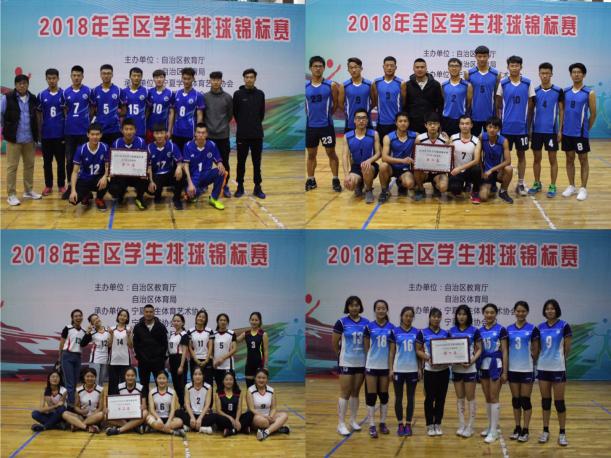2018年11月11日,为期4天的“2018年全区大学生排球锦标赛”在williamhill英国附属中学体育馆落下帷幕,我校代表队取得3金1银的好成绩。