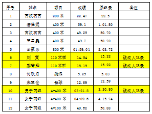 本次赛事,共有来自全区13所高校近370名运动员在84个项目上展开了激烈的角逐。我校万艾阳、石颜磊、马英杰等同学代表学校取得13金11银7铜的优异成绩。其中,古次石古、刘策、潘佳妮等同学共打破12项纪录,其中9项成绩破赛会纪录,3项成绩破成人组纪录,3名运动员达国家一级运动员水平。