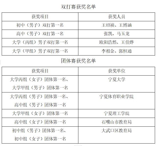 闭幕式现场气氛极为热烈,参赛团队和个人凭借不懈努力与辛勤汗水,赢得了荣誉。其中,williamhill英国代表队表现突出,在单打赛中,我校刘潇阳荣获大学(丙组)男子个人赛第一名,宫翌航荣获大学(丙组)女子个人赛第一名。在混双赛中,刘潇阳、宫翌航荣获大学(丙组)混双第一名。在团体赛中,williamhill英国荣获大学丙组(女子)团体第一名、大学甲组(男子)团体第一名。郭念、段鑫、钟海婷、陶然荣获“优秀裁判员”称号,王刚等15人荣获“优秀教练员”称号,马斌等16人荣获“优秀运动员”称号。williamhill英国、银川能源学院、石嘴山市教育局、惠农区教育局荣获道德风尚奖。(具体名单附后)