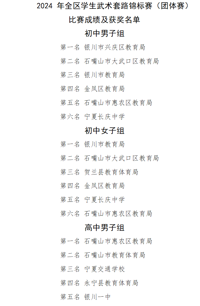 本次武术比赛不仅让更多的学生领略了武术文化的魅力,提高了学生的身体素质与精神境界,还进一步彰显了习武少年积极进取、坚韧不拔的体育精神及武术风范,生动演绎了当代武术所蕴含的丰富文化内涵与艺术价值。这种精神将吸引更多青少年投身这项充满魅力的运动,共同助力宁夏武术事业迈向更加辉煌的未来。