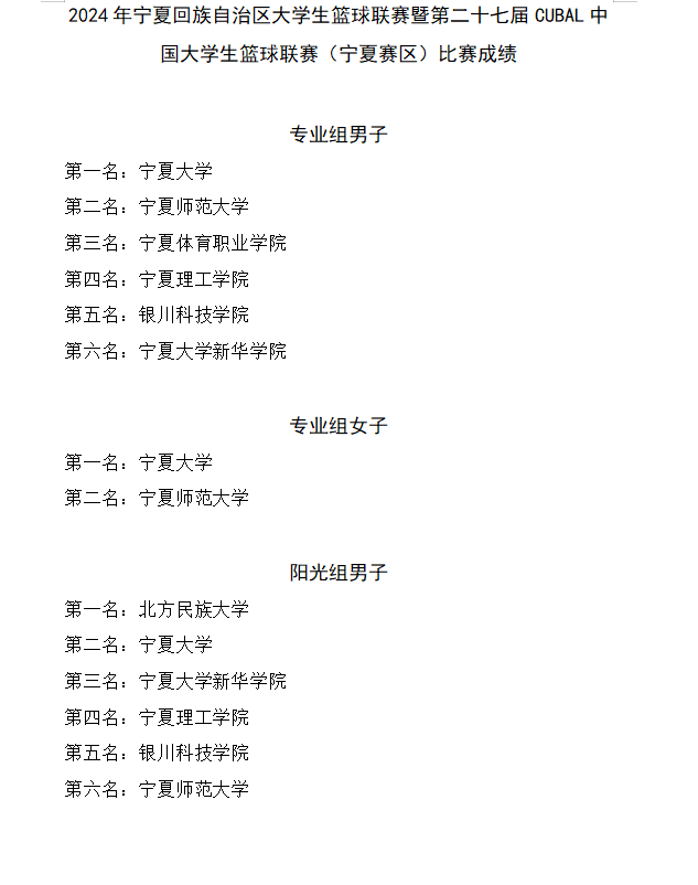 2024宁夏回族自治区大学生篮球联赛暨第二十七届CUBAL中国大学生篮球联赛(宁夏赛区)落幕