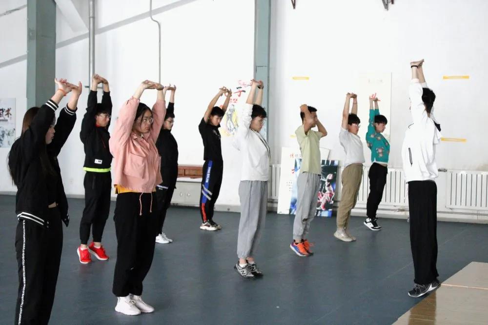 “左脚分开,松劲站立,掌抱腹前,屈膝下蹲……”付文辉同学首先给大家整体做了一个示范。然后分解动作,让同学们更好的去理解和感受动作,并耐心的指导每一位同学,看到错误的动作及时纠正。末了,大家一起把全套“八段锦”练习了一遍。