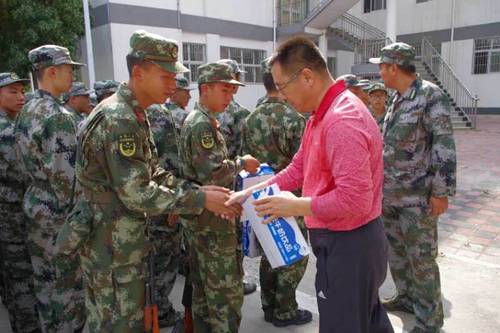 此次院领导的到来一是为了看望2017级孩子们,其次是为正在军训中的学生带来一丝清凉。