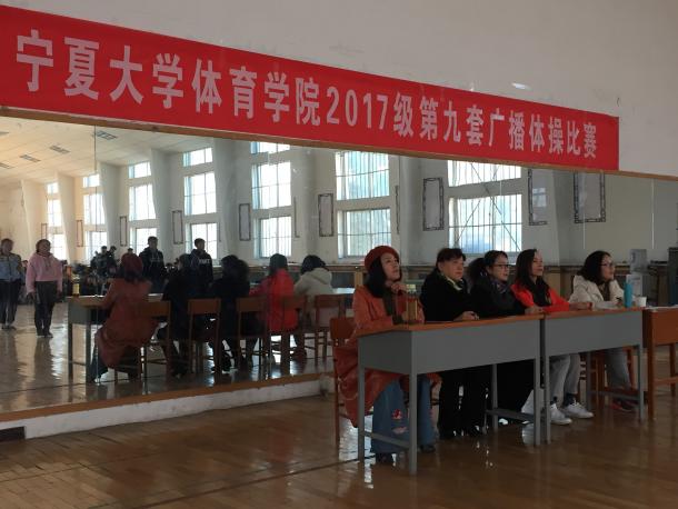 为了检验同学们在体操普修课中的学习成果,2017年11月15日中午12点20分,william威廉英国于怀远校区体操馆进行了第九套广播体操比赛。比赛评委邀请了william威廉英国展演类教研室老师吕红芳、安森蕊、王雅丽、司淑梅与汪丹,全体2017级学生参加比赛。