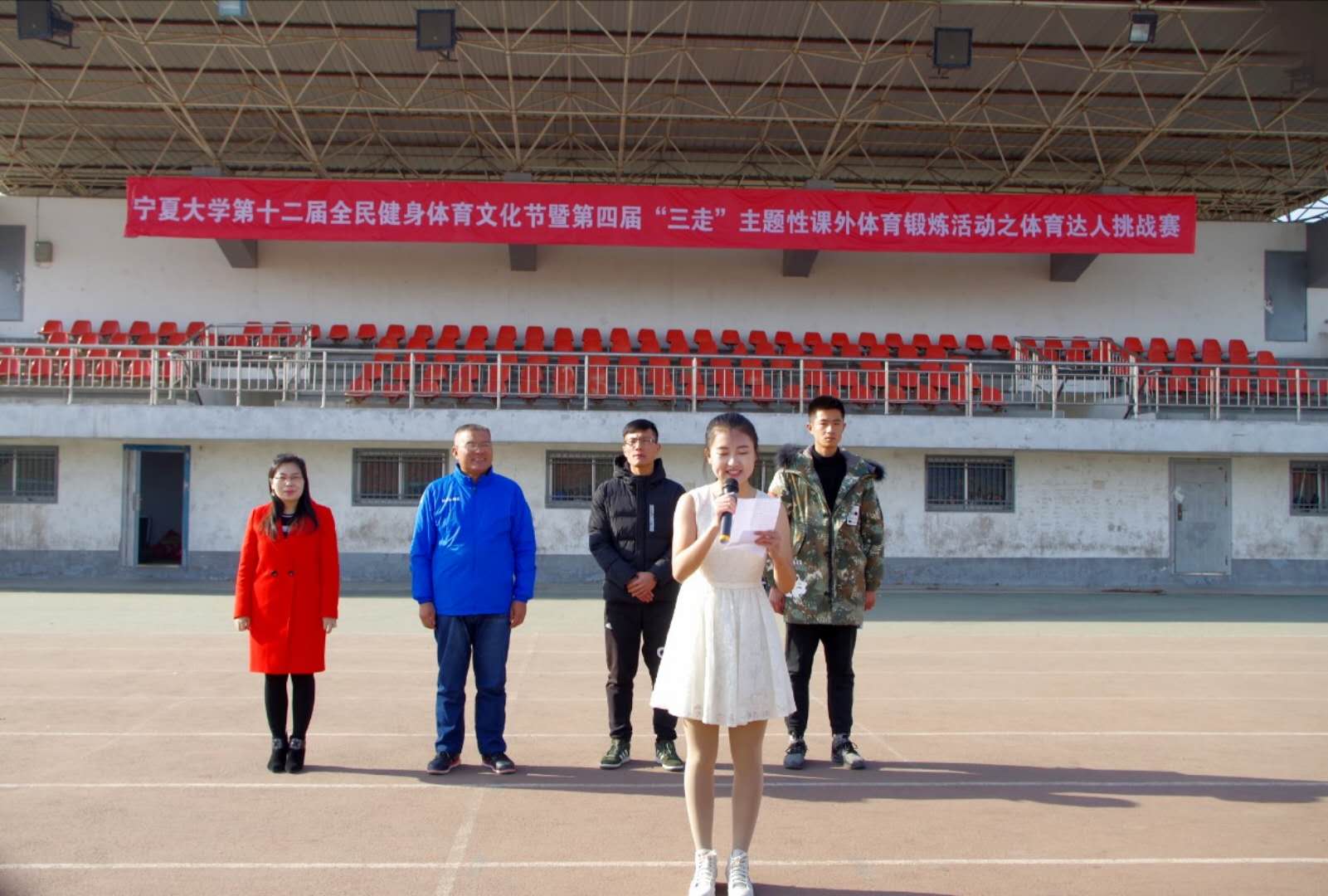为进一步增强我校大学生体育锻炼意识,激发体育运动的热情,搭建同学们自我展示的平台,2017年11月29日13时30分,由williamhill英国团委主办、william威廉英国团委学生会承办的“williamhill英国第十二届全民健身体育文化节暨第四届‘三走’主体性课外体育锻炼活动之体育达人挑战赛”在怀远校区田径场隆重举行。william威廉英国党委书记孙建军、williamhill英国团委副书记闫蓉、william威廉英国团委书记王玮出席开幕式。