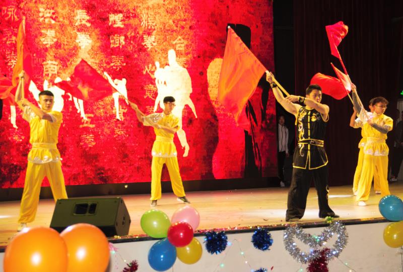 表彰大会结束后,迎新联欢会在街舞社团激情四溢的开场舞《舞蹈串烧》中拉开帷幕。独唱《花火》《精忠报国》歌声高亢,充满民族风情的回族舞蹈《走咧走咧去宁夏》舞姿曼妙,二重唱《小幸运》《我们的时光》琴瑟和鸣,小品《甄嬛后传》和《大学生就业难》让人忍俊不禁,手语舞《国家》更是用两种不同的演绎方式激荡着在场师生的爱国情怀,《杜佳泽与乐队》《keep on dance》和《尚武狂儿》三个节目更是将整场联欢会推向高潮,为我们呈现出一场视听盛宴。随着武术健儿们的精彩亮相,联欢活动在一浪高过一浪的欢呼声和掌声中落下了帷幕。