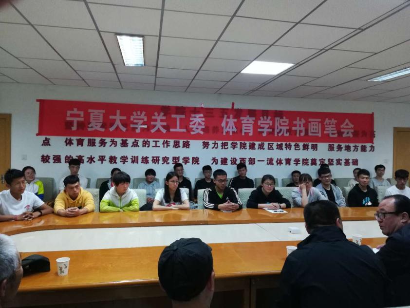 在母校建校六十周年即将到来之际,为营造良好校庆氛围,进一步丰富校园文化生活,提高学生文化素养,根据学校关工委的文件要求,结合william威廉英国学院学生工作年度计划,2018年4月18日,由williamhill英国关工委主办,william威廉英国及“可为”书画协会联合承办的“校庆杯”书画笔会在william威廉英国会议室举行。