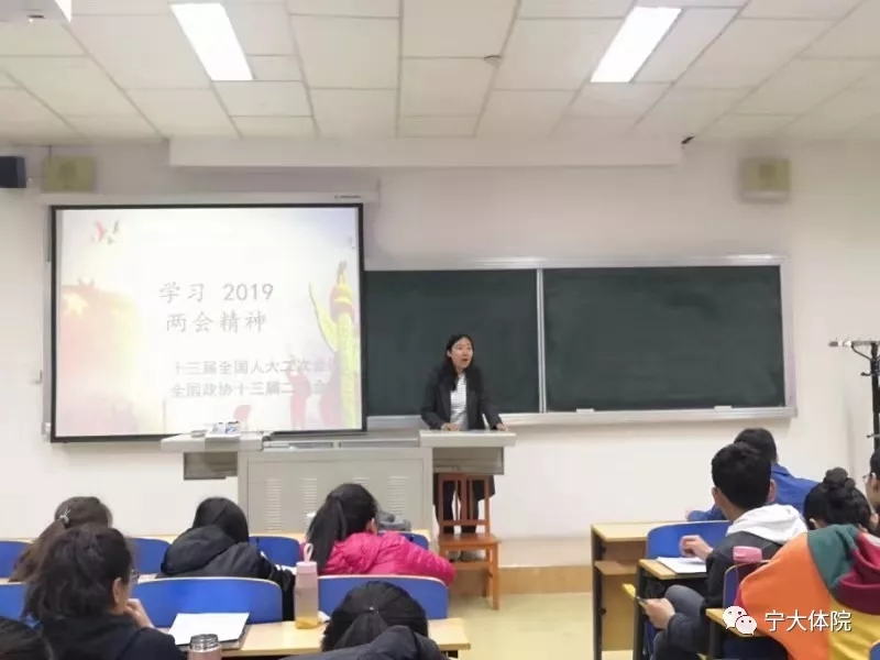 会中,田红老师带领大家学习了《政府工作报告》,并对其中提出的一些关键信息、2019年教育改革发展的重点向同学们进行了深刻的解读。随后,结合我院的实际以及贴近同学们生活的一些事情对两会精神进行了生动形象的概述。最后,辅导员田老师希望全体参会人员能够从自身做起,严格要求自己,时刻牢记自己的使命,积极向党组织靠拢。