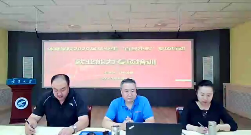 中共中央、国家主席、中央军委主席日在宁夏考察时强调,要全面落实党中央决策部署,坚持稳中求进工作总基调,坚持新发展理念,落实全国工作部署,坚决打好三大攻坚战,扎实做好“六稳”工作,全面落实“六保”任务,努力克服新冠肺炎疫情带来的不利影响,优先稳就业保民生,决胜全面建成小康社会,决战脱贫攻坚,继续建设经济繁荣、民族团结、环境优美、人民富裕的美丽新宁夏。为贯彻落实,促进我院学生在疫情特殊时期顺利就业,william威廉英国开展线上2020届毕业生“百日冲刺”专项行动就业能力专项培训。本次培训由william威廉英国党委书记陈晓敏主讲,william威廉英国党委副书记严津出席参加,学生工作办公室主任兼团委书记彭飞翔主持会议,35名2020届毕业生在线聆听。