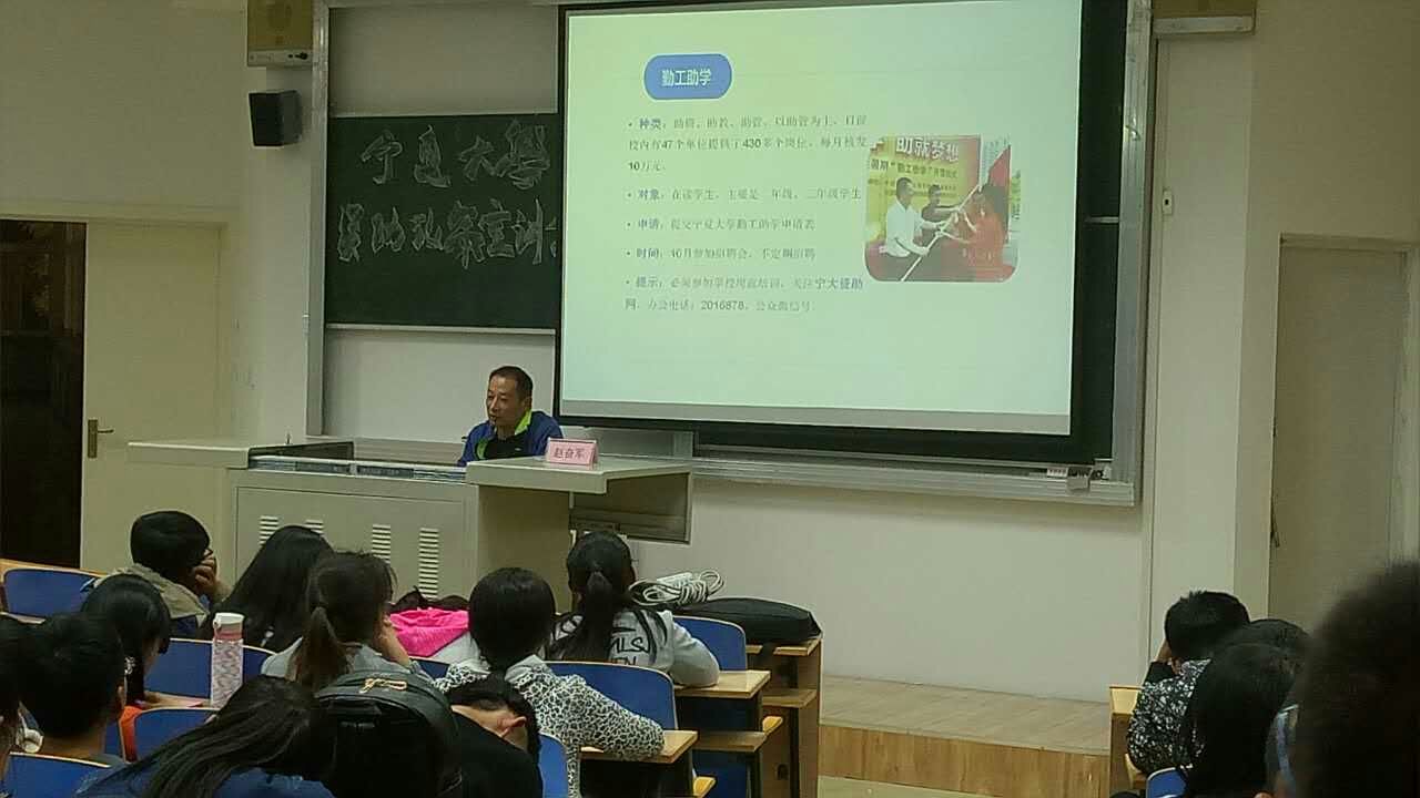 2016年10月11日下午6点30分在宁大B区一教231教室举行了williamhill英国资助政策宣讲会。本次讲座的主讲人为william威廉英国党委副书记赵奋军老师。