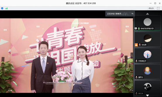 为引导广大青年积极进取,弘扬五四精神,5月4日上午10时,williamhill英国校团委组织进行主题为“让青春绽放祖国”网络直播团课活动,我院22个团支部通过腾讯会议组织全体学生观看直播教程。
