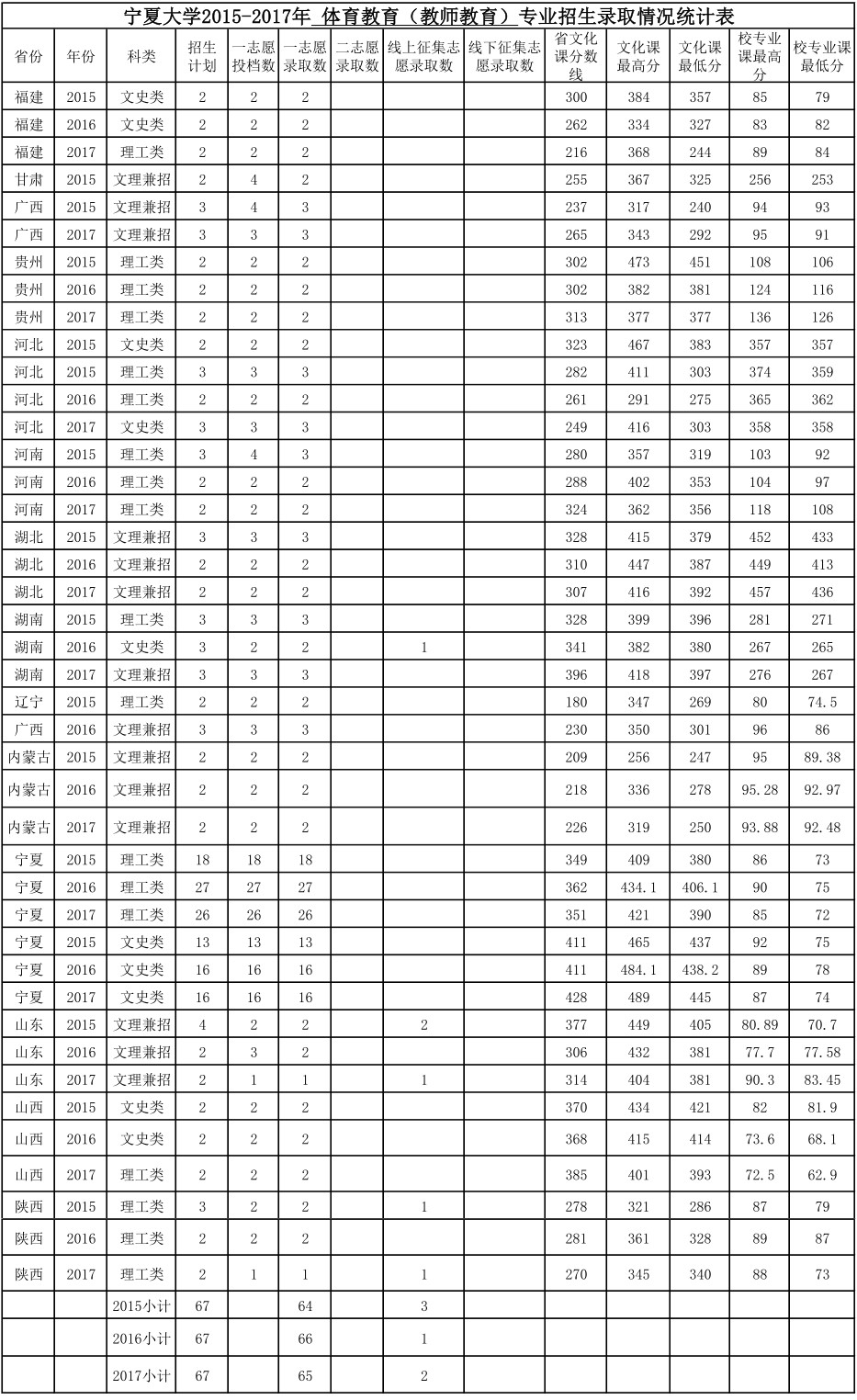 williamhill英国2015-2017年 体育教育(教师教育)专业招生录取情况统计表