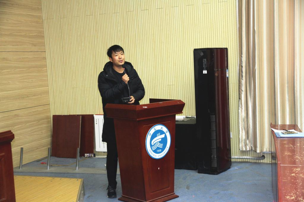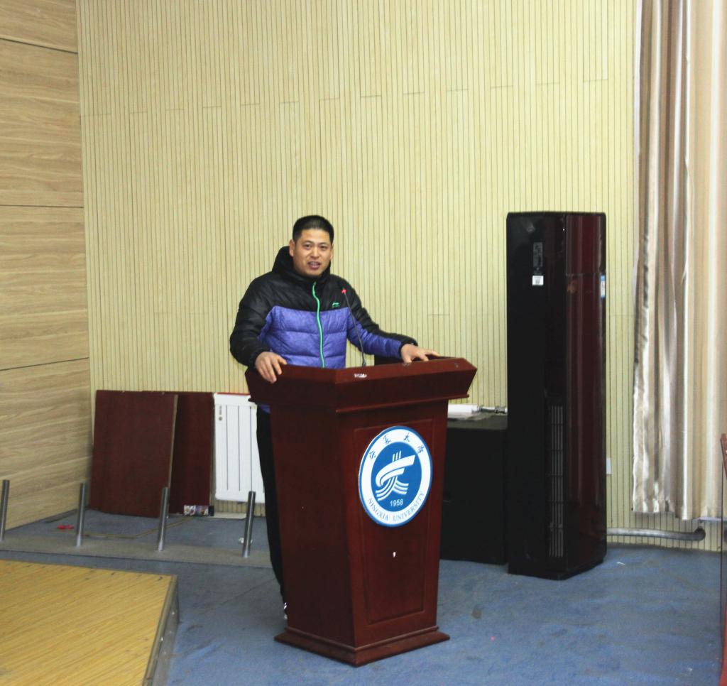 咸云龙院长对今天的实习活动进行了总结发言,他首先通过现场举手互动的形式,了解了实习学生在各实习点实习中涉及运动项目数、专项教学运用人数和实习后仍然坚持从事体育教育的人数等基本情况,然后语重心长的表达了对2013级同学们的期望,进一步强调学习的重要性,谈到如何将体育做出“大”学问,“大”学科,希望更多地同学们在体育教育的道路上坚持和坚守,表明学院会为同学们更好的走好这条路推波助澜,推进实施更多方面的扶持措施。最后,他给予了同学们最诚挚的新年寄语。
