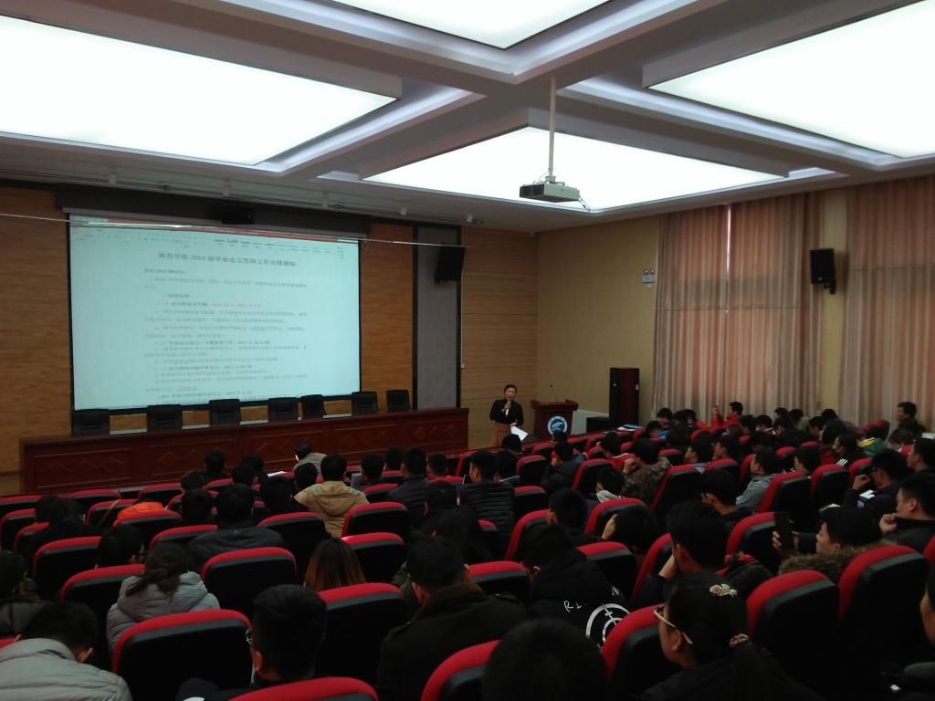 2017年1月3日上午9:00,william威廉英国在怀远校区英才报告厅召开了2013级学生实习总结和本科论文指导会议,william威廉英国党委书记孙建军、院长咸云龙、副院长张炜、教务处实习科科长李志涛、学院实习指导教师和特邀实习学校指导教师银川职业技术学院体育组组长苏自强、银川24中体育教研室主任杨晓东出席了这次会议,william威廉英国2013级体育教育、运动训练和社会体育三个专业的全体学生153人参加了这项活动。体育教育系主任张宁老师主持了会议。