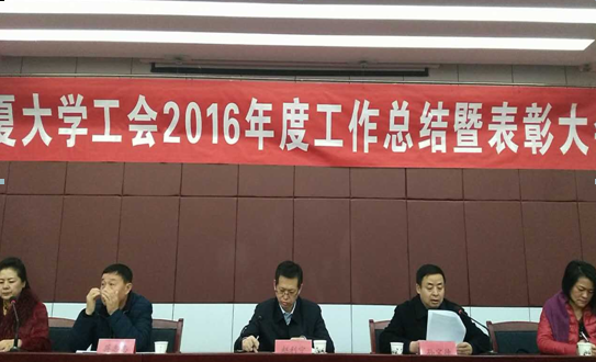 1月11日上午10:00,我校2016年度工会工作总结暨表彰大会在怀远校区研究生院二楼报告厅召开。校党委副书记赵利宁、校工会主席孙宝德,校工会副主席蒋志忠,校工会委员史娟等出席了表彰大会。学校各单位分工会主席和委员参加了大会。会议由校工会副主席王红枫主持。