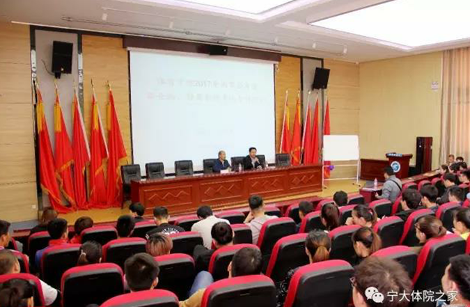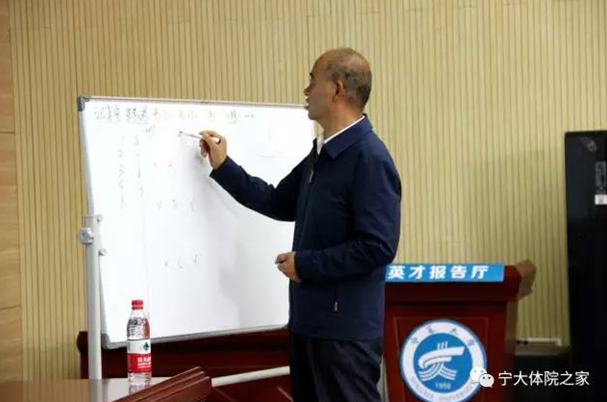 2017年4月18日,william威廉英国特邀宁大校友、原自治区招标局局长汤效禹为毕业生举办2017年国家公务员、事业编、特岗教师考试专题讲座。