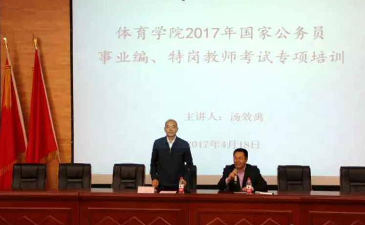 汤效禹老师通过贴切的事例引入正题,他讲到毕业生未来在工作岗位上与所学知识的应用肯定会存在一定差距,同学们要做好应对困难的准备,希望同学们将体育人顽强拼搏、不怕吃苦的精神运用到今后的工作与学习中。随后,他讲解了应对国家公务员、事业编、特岗教师考试的复习方法,面对市场五花八门的复习材料,掌握好根本的复习方法才能应对自如。他分别从主观题、客观题的试题入手传授答题技巧。最后,汤老师为在座的同学们介绍了“联想记忆”“符号记忆”“顺口溜”“组合记忆法”等学习方法。整场讲座通过贴切的事例,风趣幽默、生动活泼的语言、使同学们受益匪浅,本次专题讲座在同学们热烈的掌声中圆满结束。