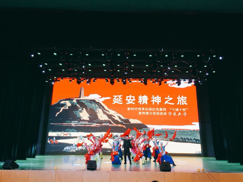 活动以充分展现延安当地风土人情的《吉祥腰鼓》开场,《民歌联唱》《精神之旅》《信天游全席》《苹果红了》等饱含红色基因的歌曲、舞蹈、改编故事一一展现宁大师生面前,让人流连忘返。