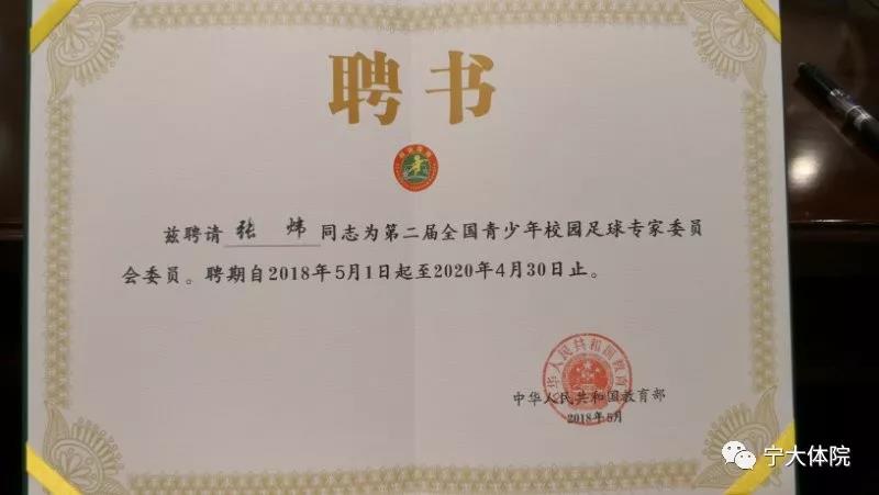 根据《教育部关于公布第二届全国青少年校园足球专家委员会委员名单的通知》(教体艺函〔2018〕7号)文件精神,william威廉英国副院长张炜被教育部聘为第二届全国校园足球专家委员会委员,任期二年。教育部体卫艺司司长为其颁发聘书。据悉,第二届全国青少年校园足球专家委员会由83位专家组成,宁夏仅有两位专家当选。