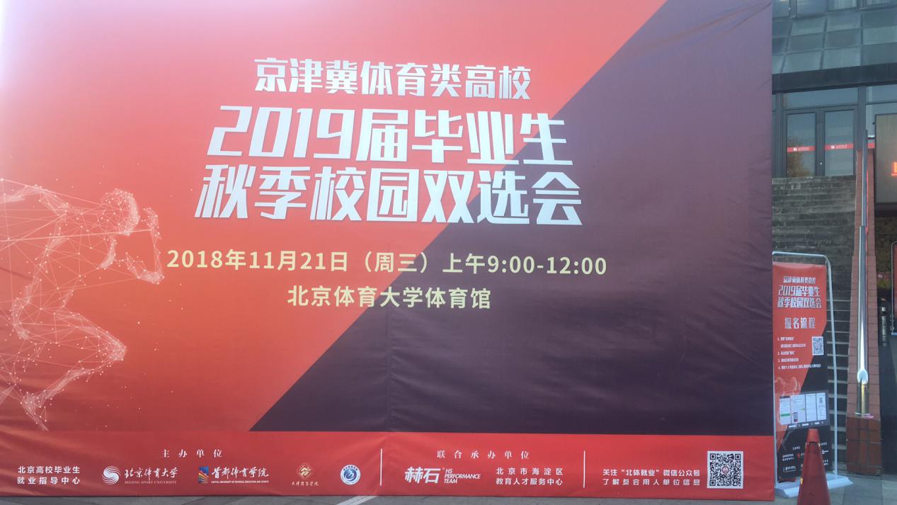 2018年11月21号,应北京体育大学邀请,william威廉英国指派王振洲老师前往北京偕同在北京体育大学访学的汪丹、苏欣老师一起参加由北京体育大学举办,北京高校毕业生就业指导中心、北京体育大学、首都william威廉英国、天津william威廉英国、河北william威廉英国联合承办的“京津冀地区体育类高校2018年秋季校园联合双选会”。