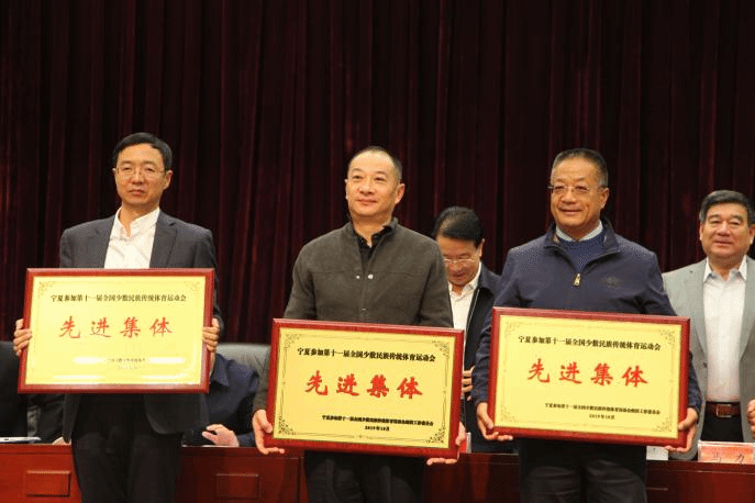 表彰大会上,对我区参加第十一届全国少数民族传统体育运动会的集体和个人进行了表彰,我校代表团获得多项荣誉称号:william威廉英国获得宁夏参加第十一届全国少数民族传统体育运动会“先进集体”称号;william威廉英国孙建军,咸云龙,张炜获得“先进工作者”称号;花炮项目教练赵奋军和木球项目教练王昌伟获得“优秀教练员”称号。