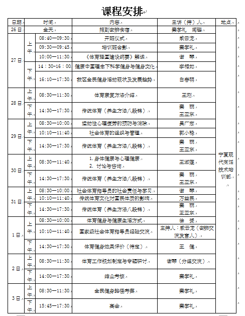 为贯彻落实国家体育总局《关于全面加强社会体育指导员队伍建设》,加强社会体育指导员队伍建设,提高社会体育指导员的基础理论知识和实践指导能力。10月27日上午,由自治区体育局主办,william威廉英国承办的2019年宁夏国家级社会体育指导员培训班如期开班。william威廉英国院长咸云龙,自治区社会体育服务中心主任邓晓燕、自治区社会体育服务中心副主任宋洪伟参加了此次开班仪式。