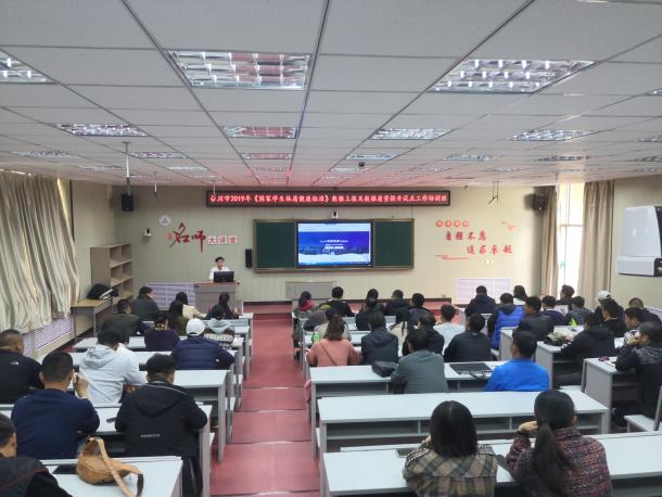 为积极响应“体育强国”发展战略,扎实开展“不忘初心、牢记使命”主题教育,2019年10月28-30日期间,我院党员教师、研究生导师李晓玲教授与“青少年健康服务平台”培训专家丁照津老师带领我校在读研究生肖泽兰、贾敏娟对宁夏五个市参加《国家学生体质健康标准》数据上报及数据质量提升试点工作的相关负责人和技术人员进行了专题培训。