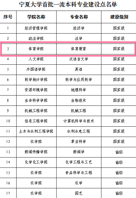 根据教育部发布的《教育部办公厅关于公布2019年度国家级和省级一流本科专业建设点名单的通知》(高教厅函[2019]46号)文件内容,我院体育教育专业成功进入国家级一流本科专业建设点。
