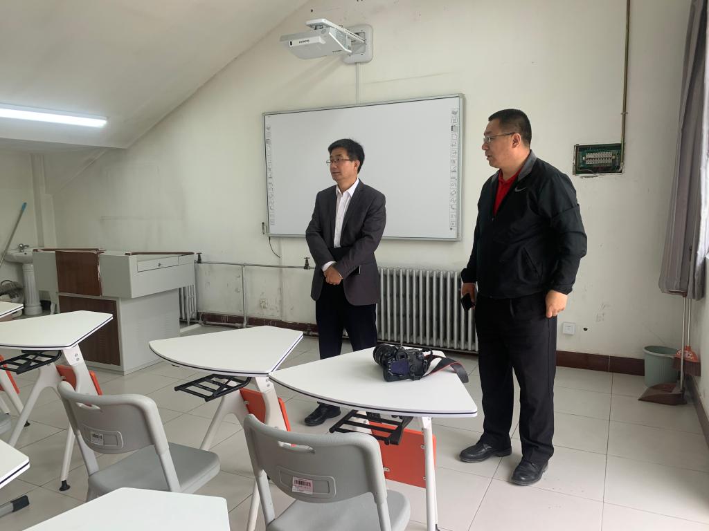 周震副校长先后走访了学院体育场馆、办公区域等地,详细查看了学院疫情防控测温点和学生返校复课工作筹备情况,并进行了认真座谈。