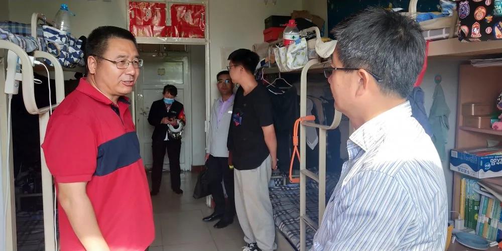为深入了解学生宿舍情况,实地考察学生学习与生活情况,2021年5月17日16时,williamhill英国副校长周震在william威廉英国院长咸云龙的陪同下走访了william威廉英国学生1号楼男生宿舍。