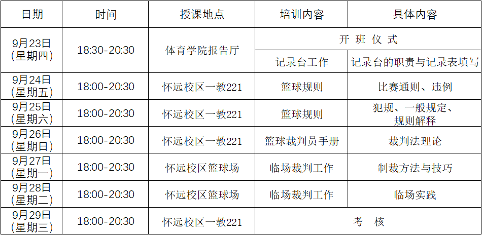 本次参加培训的学员来自全校近20个学院,是我校首次举行的全校范围的篮球裁判员培训活动,受到了广大篮球爱好者的关注。在随后为期一周的培训中,学员们将会通过记录台工作、篮球规则、篮球裁判员工作、临场执裁实践等方面的培训,拓展自己的篮球知识与技能,提升对篮球运动裁判工作的进一步了解。