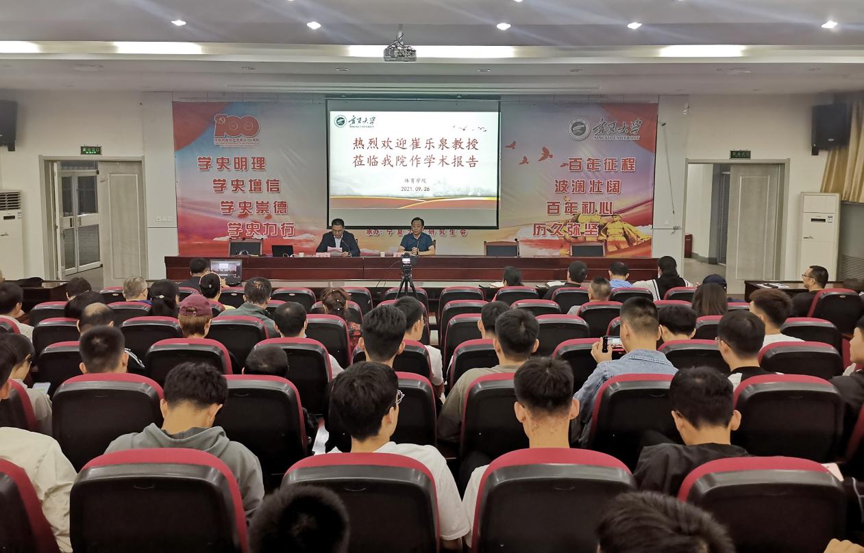 崔教授关于《铸牢中华民族共同体意识与中华民族传统体育发展研究》的学术报告是对习近平总书记关于民族团结进步的重要论述、中央民族工作会议精神,以及民族传统体育文化的融合、高度凝练和深入思考,恰逢宁夏回族自治区“民族团结月”,为我院师生进一步铸牢中华民族共同体意识,深入挖掘和开展民族传统体育研究,弘扬民族传统体育文化,充分发挥体育育人价值功能起到了积极的促进作用。