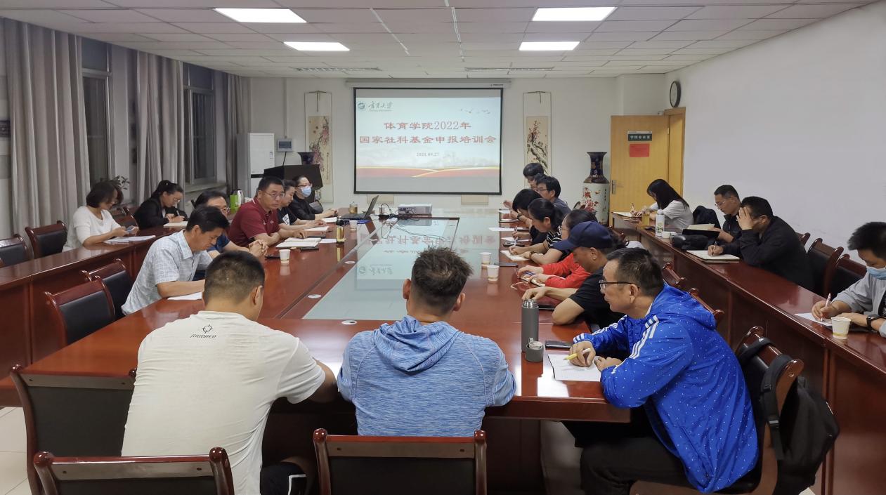 为提高我院教师申报国家社科基金项目质量和数量,9月27日晚,我院在学院会议室举办2022年国家社科基金项目申报培训会,特邀国家体育总局体育文化发展中心研究馆员、博士生导师崔乐泉教授对我院教师进行培训。学院部分领导班子成员、40岁以下青年教师、博士学历教师及硕士研究生指导教师参加会议,会议由院长咸云龙主持。