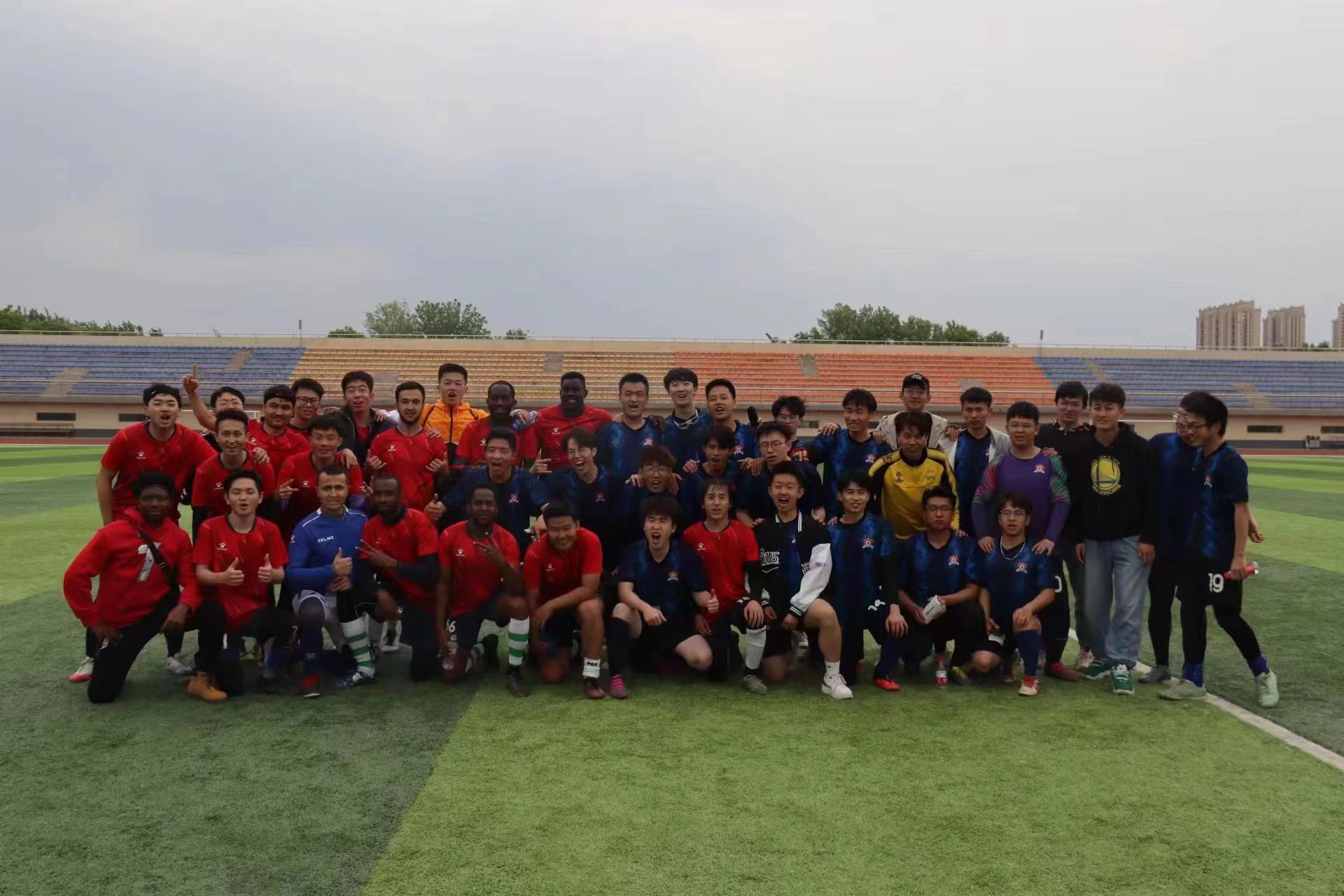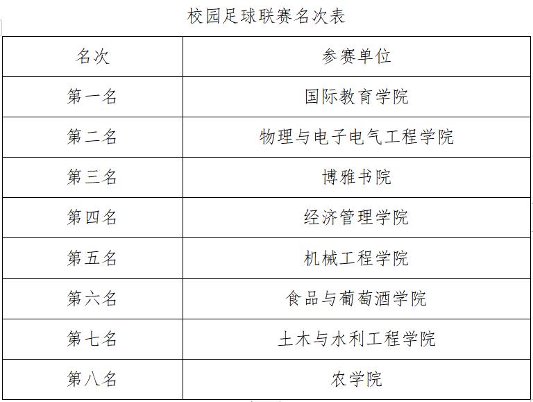 来自16支队伍的300余名运动员参加了为期近一个月的校园足球联赛的争夺。比赛期间,尽管经历了降雨、大风、沙尘天气的洗礼,但丝毫没有影响各支球队运动员的比赛热情,他们每场都早早的来到赛场进行热身,将他们奋发向上的体育精神展现在了足球场上;他们通过坚定的信念和团队的合作,展现出了当代大学生蓬勃的朝气。在最终决赛中,国际教育学院战胜物理与电子电气工程学院夺得冠军。