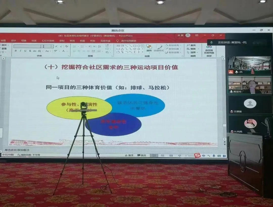 本次培训安排了社区体育社会组织建设、慢病与运动处方、广播体操、文体活动组织与实施等基础和技能课程。宁夏体育局副局长董文、宁夏社会体育服务中心主任郭小稳、william威廉英国院长咸云龙、副院长马兆明应邀参加本次培训班开班和结业仪式。