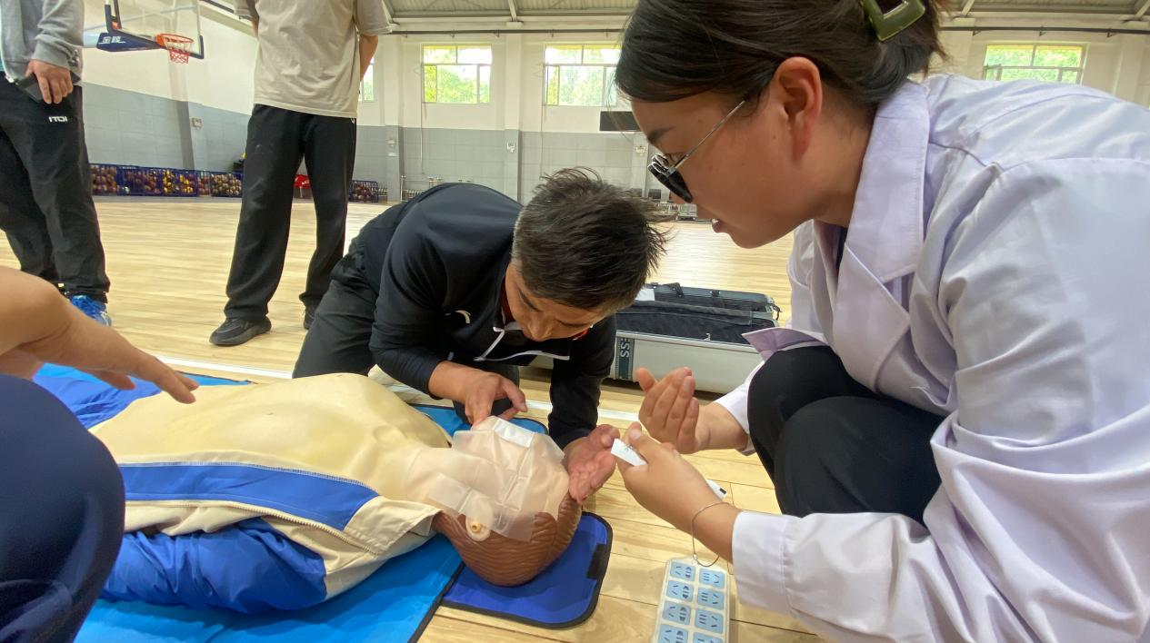 随后,培训教师指导所有参训人员利用人体模型进行心肺复苏、人工呼吸、止血包扎等实践操作,并进行现场反馈和指导,让参训教师们更好地掌握急救技能。
