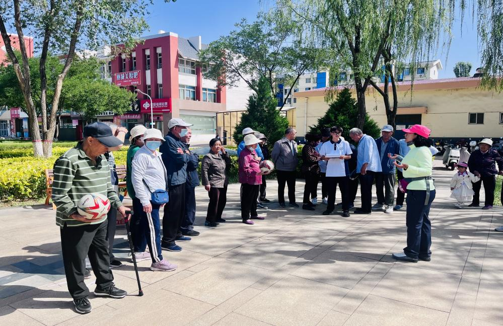 针对老年人,科普团队还进行了单腿闭眼站立、双手背后对拉、坐起站立行走、击打“保龄球”等活动,并为老年人讲解肌肉锻炼、骨质疏松及防摔倒的有关营养与运动知识,向居民分发体重管理、健康自我管理手册。