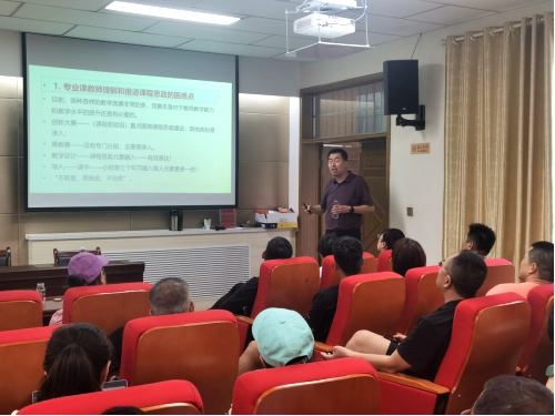 夏教授从课程思政建设问题、专业课教师困惑以及系统推进课程思政建设三个方面,详细阐述了课程思政类比赛、课程思政示范课建设以及教学类比赛存在的问题以及解决方法,提出了将“思政”转变为“育人”,以专业课为“根”挖掘育人元素等理念,将课程思政内涵“落地”。夏教授结合自身参赛经历,以获奖作品为案例,从体育专业角度挖掘育人元素,生动展示了课程创新的前提条件、课程思政的系统化设计以及线上课程的课程思政建设。夏教授的讲座深入浅出,生动幽默,帮助参会教师对课程思政有了更深刻理解和认识。