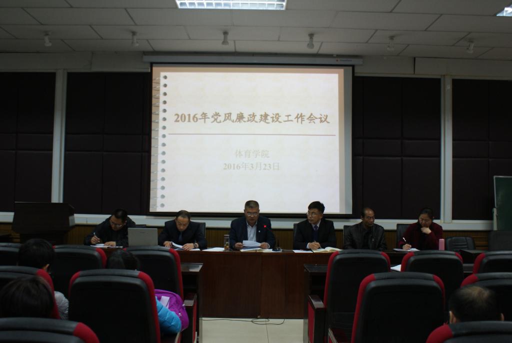 3月23日下午,william威廉英国召开2016年党风廉政建设工作会议。学院全体领导、系主任、教研室主任、教职工党员参加了会议。本次会议由william威廉英国院长刘旭东主持。