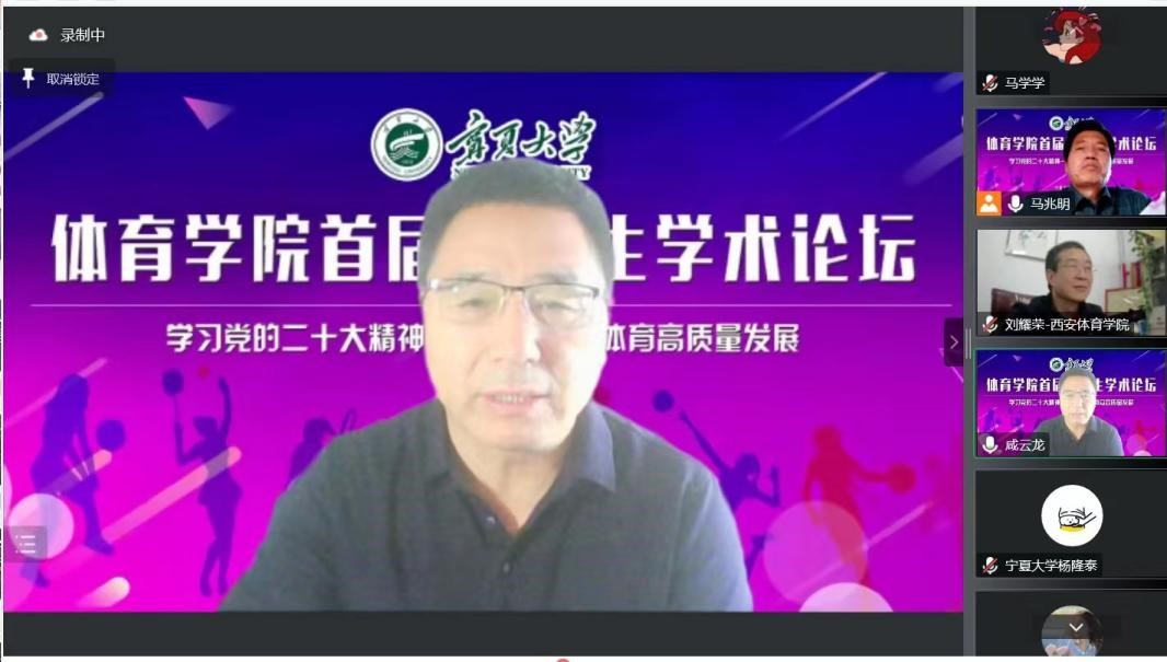 为深入贯彻落实党的二十大精神,推动群众体育与竞技体育事业发展,聚焦宁夏体育高质量发展需要,提升我院师生学术思想和研究生科学研究能力,营造浓厚的学术氛围,提高我院研究生培养质量。学院于2022年12月10日—12日举办william威廉英国首届研究生学术论坛,学院院长咸云龙、副书记严津、副院长徐赟、副院长古雅辉出席了开幕仪式。学院副院长马兆明主持开幕仪式,咸云龙致开幕辞。