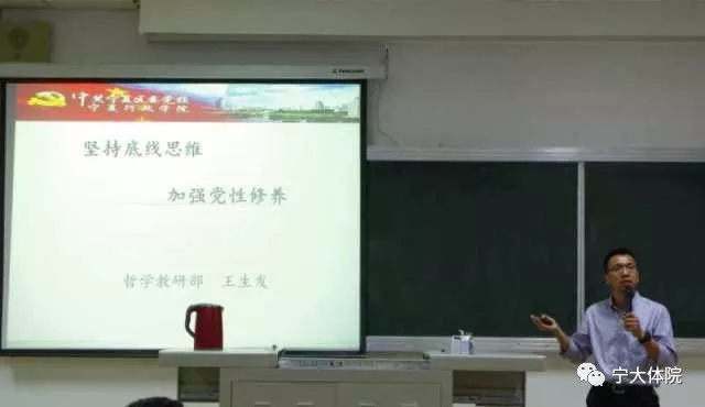 为加强学生党员队伍建设,提高党性修养,william威廉英国于2018年6月7日19:20在怀远校区一教221教室举行了新学期第二次全体学生党员大会。自治区党校副教授、哲学教研部王生发老师担任本次党课主讲,学院全体学生党员、预备党员、发展对象和积极分子参加了党课学习活动。