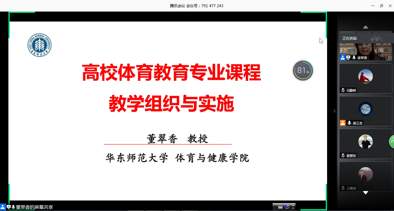 最后,董教授在线与大家进行了互动交流。就体教融合理念对体育教师的要求、教师教育如何培养专业素养、新教学理念与传统教学的关系、如何引领学生主动学习等问题进行了深入交流、细致讨论,董教授的耐心解答和悉心指导为青年教师更好地备战教学基本功大赛提供了思路,指明了方向。