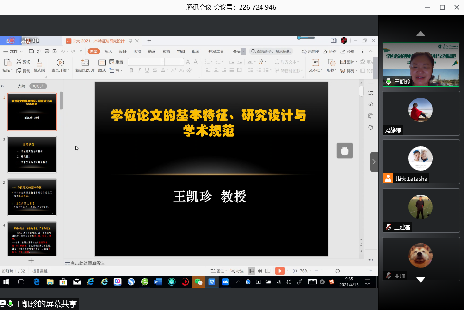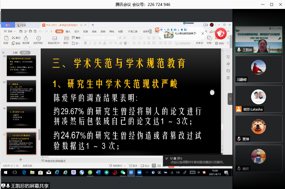 随后,王凯珍教授就学生提出的学位论文选题、研究、可行性等问题进行线上答疑,解决了同学们普遍关注的问题,气氛热烈。
