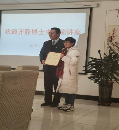 徐芝芳副院长首先代表william威廉英国向齐静博士表示热烈的欢迎,并向与会人员介绍了齐博士的教育背景、科研成果及主要研究方向。咸云龙院长代表学院为齐静博士颁发了聘书,正式聘任齐静博士为我院硕士研究生导师。