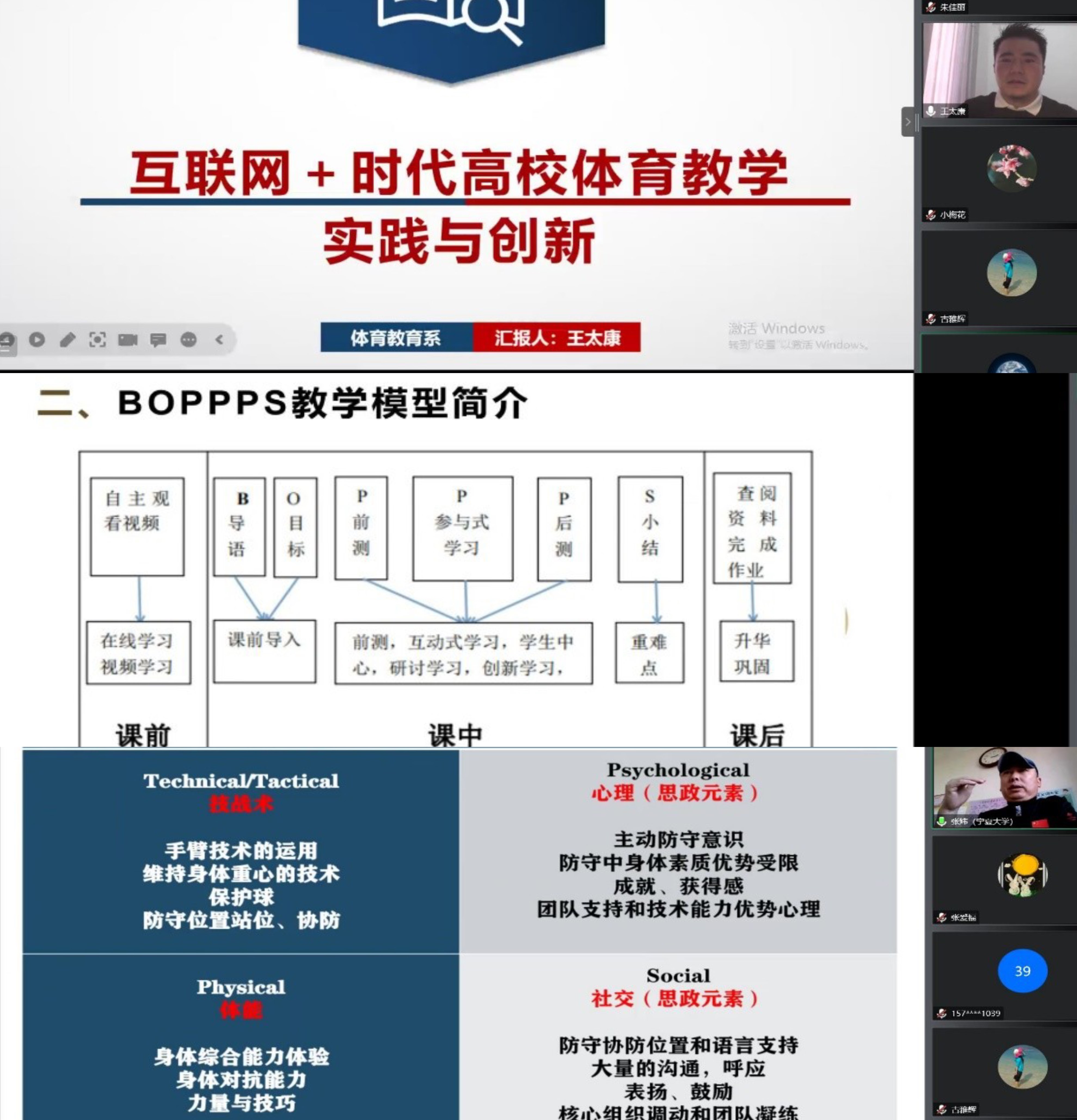 体育教育系于11月27日举办了系内预赛,参赛教师从理念与目标、内容分析、学情分析、课程思政、考评与反馈、设计创新等方面进行教学设计创新汇报。教师们准备充分,语言表达清晰准确,教学过程设计合理,充分展示了各个团队的教学创新成果。评委们尽职尽责,实事求是,严格按照相关标准对比赛进行评价打分,并提出合理的意见与建议,最终推荐张炜、谢琴、王太康三位老师参加学院初赛。