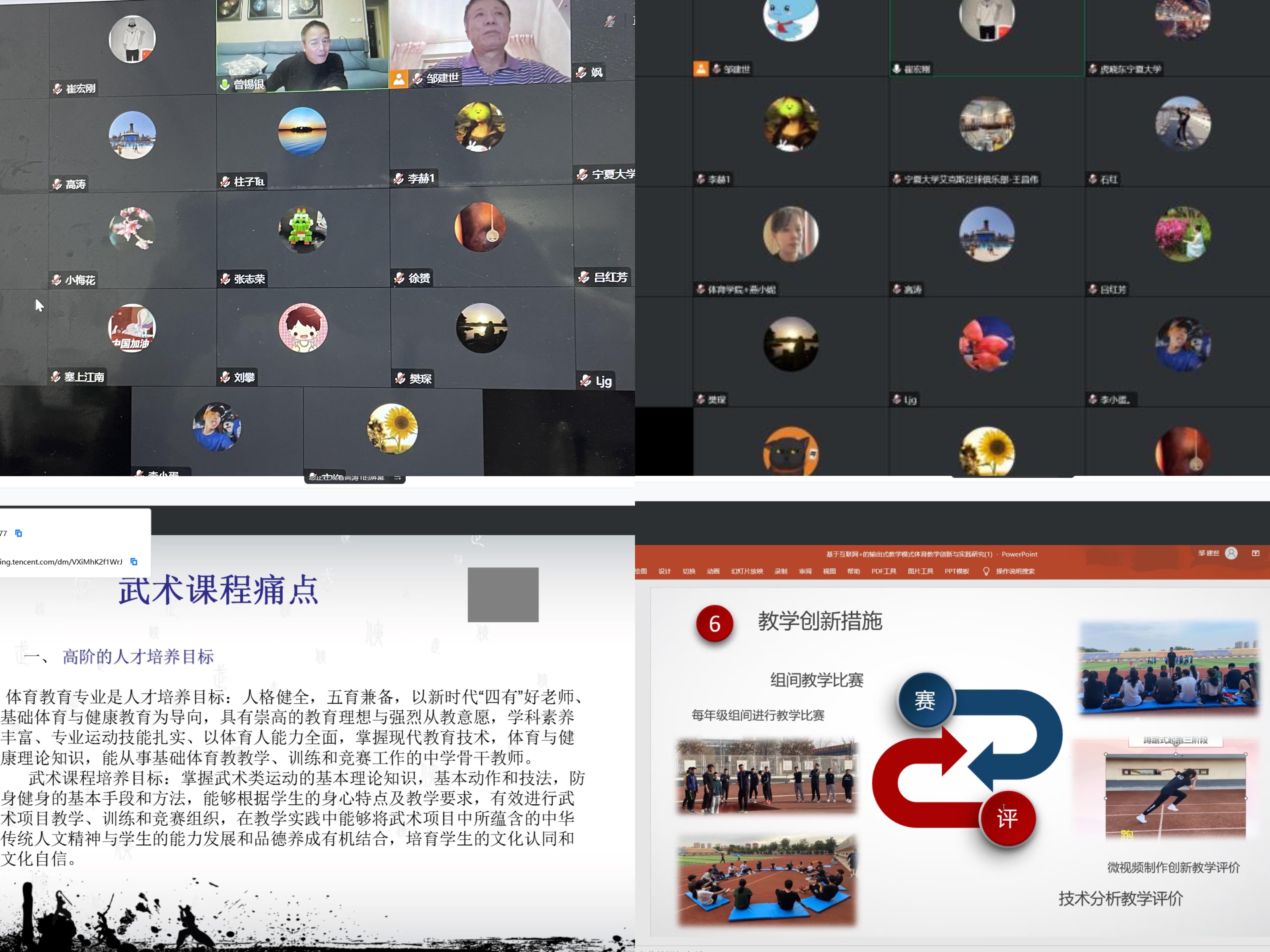 11月24日至25日,运动训练和武术与民族传统体育系举办系内预赛,参赛教师都能按照比赛规则分别从课程目标、学情分析、课程痛点、创新课程改革方法和措施、课程成果展示5个方面进行阐述。参赛教师的专精素养和旁征博引的教学方式让大家受益匪浅。最终推荐邹建世、马艳军和丁腾三位老师参加学院初赛。此次系内预赛充分展现了运动训练和武术与民族传统体育系教职工过硬的专业素养,同时,敦促青年教师从现在开始准备,积累教学成果、不断自我提高、自我突破、自我超越,将老一辈教师的精神传承下去。