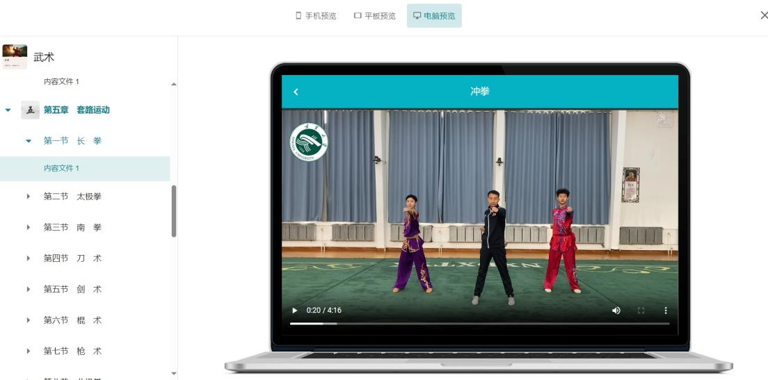 教材丰富和完善了武德与武术礼仪内容,将其单列成章,并作为开篇之章,既符合武术树德为先,尚武崇德之精神,也体现了立德树人之育人宗旨;在理论知识编写上,依据理论与技术实践之关联,其将武术自学知识调整至武术套路教学之前,有利于培养学生学习能力;在技术体系方面,着重以武术基本功和基本技术教学为主,体现了淡化套路,突出方法和授生以渔的理念;在运动形式上,增加完善了丰富了武术散打、短兵、等较为普及的格斗运动项目;同时选编了八极拳、翻子拳等西北典型传统武术套路,体现了地方武术特色,较为全面地展示了武术运动。本教材共有图片465张,视频149段、交互学习120处、气泡8处、链接2处。