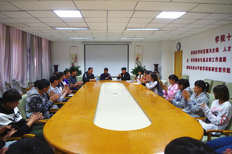 为全力做好CUBA联赛赛前动员和各项准备工作,明确参赛纪律和要求,william威廉英国于4月7日16:00在学院会议室召开了赛前动员大会。学院竞技体育服务中心主任张宁老师、男篮教练彭飞翔、女篮教练马绮龙出席会议,男、女篮两队共24名队员参加会议。