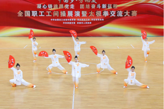 为深入学习贯彻习近平新时代中国特色社会主义思想和党的二十大精神,贯彻落实中国工会十八大精神,引导广大职工积极参加全民健身活动,打造健康文明、昂扬向上、全员参与的职工文化,全国总工会近日在承德市举办了“中国梦·劳动美——凝心铸魂跟党走 团结奋斗新征程”全国职工工间操展演暨太极拳交流大赛。