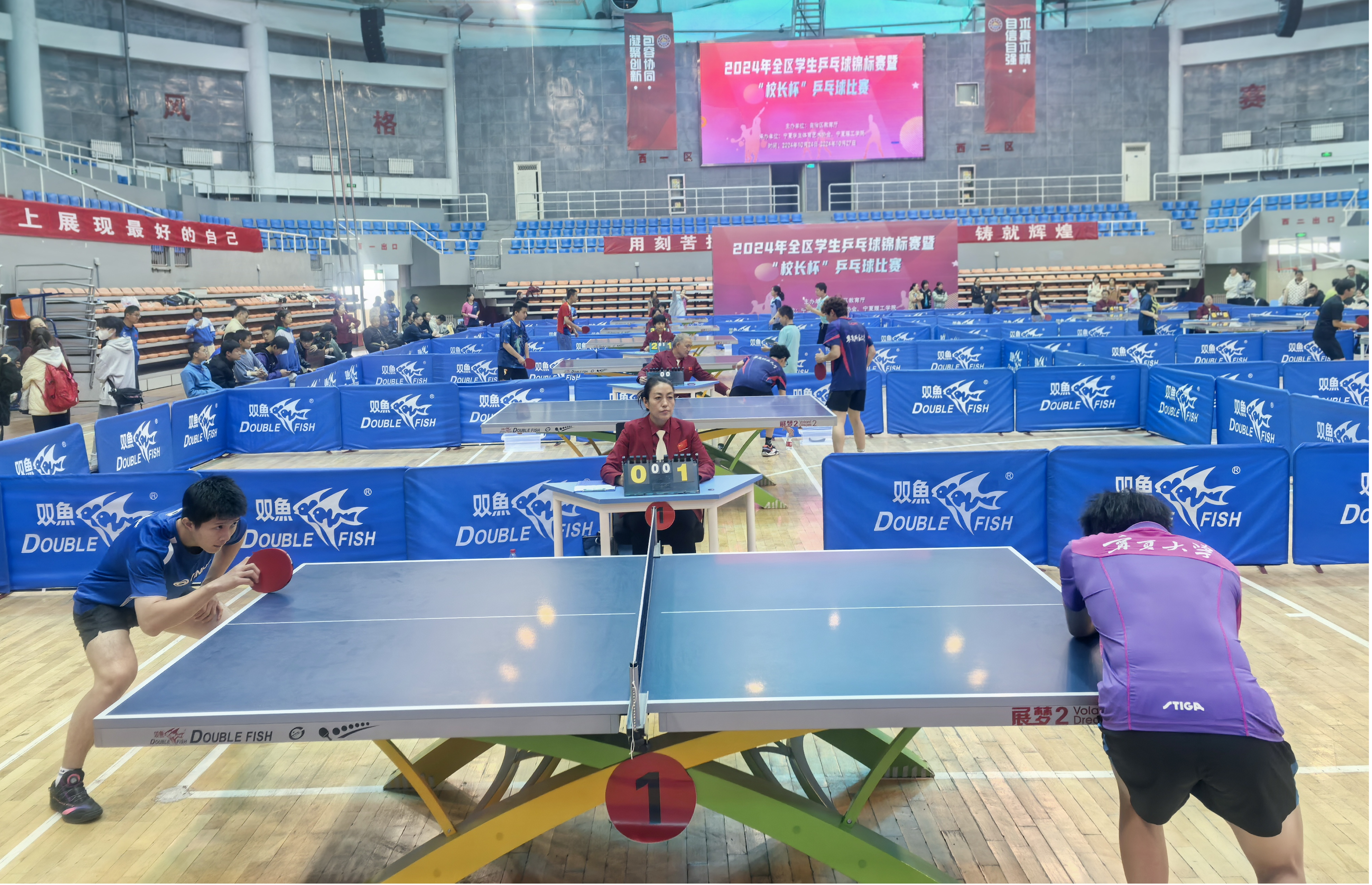 2024年全区学生乒乓球锦标赛暨“校长杯”乒乓球比赛,于10月24日-27日在宁夏理工学院举行。本次比赛由自治区教育厅主办,宁夏学生体育艺术协会、宁夏理工学院承办。我校共有1位校领导和16名学生参加了此次比赛,经过3天激烈的角逐,williamhill英国代表队表现出色,共获得了8项冠军,1项亚军、2项季军和多项前八名。